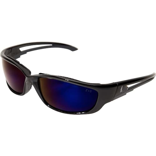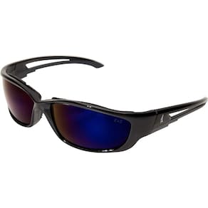 Edge SK-XL118 Kazbek XL Óculos de segurança envolventes, antiarranhões, antiderrapante, UV 400, grau militar, compatível com ANSI/ISEA e MCEPS, ajuste largo XL, armação preta/lente espelhada azul