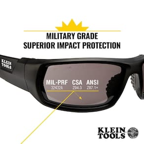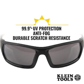 Klein Tools Óculos de segurança 60164, óculos de proteção profissional de EPI com armação completa, resistente a arranhões e antiembaçamento, lente cinza - Os óculos de segurança oferecem cobertura extra com armação completa, lentes largas e design de hastes para uma cobertura firme na frente e na lateral do rosto - Proteção superior contra impactos: testado de acordo com os padrões ANSI Z87.1+, CSA Z94.3 e MIL-PRF-32432A Cláusula 3.8.4.1 (fragmentação balística Classe 1) - Lentes resistentes a arranhões; especialmente tratadas para maior durabilidade para sobreviver a locais de trabalho exigentes - Recurso anti-embaciamento de revestimento durável e eficaz que não desgasta e funciona mesmo com máscaras antipoeira - Proteção UV: testado de acordo com o padrão ANSI Z87.1 U6, que bloqueia efetivamente 99,9% dos raios UV prejudiciais - Lente de policarbonato sombreada de alta qualidade; testada para bloquear a quantidade certa de luz de forma consistente com clareza sem compromissos - Conforto a longo prazo; projetado com materiais leves e flexíveis para se adequar ao seu rosto