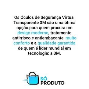 Detalhes Os óculos virtua transparente 3m apresentam um design moderno e antiembaçante. O produto conta com a qualidade mundialmente reconhecida da 3m
