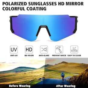 STORYCOAST Óculos de sol esportivos polarizados para homens e mulheres, óculos de sol para dirigir, pesca, ciclismo, mountain bike, proteção UV400, Preto, azul - Lentes polarizadas TAC HD – 99% de revestimento de proteção UV400, bloqueia 99% dos raios UVA e UVB prejudiciais. Restaura a cor verdadeira, elimina a luz refletida e a luz dispersa, torna o cenário mais claro e macio e protege os olhos perfeitamente. As lentes de policarbonato são resistentes a impactos, arranhões e inquebráveis. - STORYCOAST Tecnologia de armação - a armação é leve, muito flexível, resistente ao calor e resistente aos raios UV. A armação resistente e leve com almofadas de nariz antiderrapantes melhora o conforto de uso. Adequado para todos os formatos de rosto, adequado para todos os tipos de esportes ao ar livre. - STORYCOAST Tecnologia da lente - a tecnologia de revestimento à prova d'água e hidrofóbico pode proteger a lente espelhada da corrosão da água. Pode bloquear o brilho refletido e reduzir a fadiga ocular. Os revestimentos coloridos podem melhorar a visão e o contraste, e têm alta definição, resistência a impactos e resistência a arranhões. - A melhor escolha para esportes ao ar livre - melhor para ciclismo, escalada, pesca, passeios de barco, vela, esqui aquático, dirigir, correr, caminhar e viajar. Mesmo que você use o dia todo, dificilmente sentirá isso. Este é o seu companheiro confiável quando você está ao ar livre. - Insistimos em prestar atenção à qualidade do produto. Se você tiver algum problema de qualidade ou não estiver satisfeito, resolveremos seriamente o problema para você até você.
