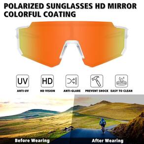 STORYCOAST Óculos de sol esportivos polarizados para homens e mulheres, óculos de sol para dirigir, pesca, ciclismo, mountain bike, proteção UV400, Armação transparente - Lente espelhada vermelha - Lentes polarizadas TAC HD – 99% de revestimento de proteção UV400, bloqueia 99% dos raios UVA e UVB prejudiciais. Restaura a cor verdadeira, elimina a luz refletida e a luz dispersa, torna o cenário mais claro e macio e protege os olhos perfeitamente. As lentes de policarbonato são resistentes a impactos, arranhões e inquebráveis. - STORYCOAST Tecnologia de moldura - a moldura é leve, muito flexível, resistente ao calor e resistente aos raios UV. A armação resistente e leve com almofadas de nariz antiderrapantes melhora o conforto de uso. Adequado para todos os formatos de rosto, adequado para todos os tipos de esportes ao ar livre. - STORYCOAST Tecnologia da lente - a tecnologia de revestimento impermeável e hidrofóbico pode proteger a lente espelhada da corrosão da água. Pode bloquear o brilho refletido e reduzir a fadiga ocular. Os revestimentos coloridos podem melhorar a visão e o contraste, e têm alta definição, resistência a impactos e resistência a arranhões. - A melhor escolha para esportes ao ar livre - melhor para ciclismo, escalada, pesca, passeios de barco, vela, esqui aquático, dirigir, correr, caminhar e viajar. Mesmo que você use o dia todo, dificilmente sentirá isso. Este é o seu companheiro confiável quando você está ao ar livre. - Insistimos em prestar atenção à qualidade do produto. Se você tiver algum problema de qualidade ou não estiver satisfeito, resolveremos seriamente o problema para você até você.