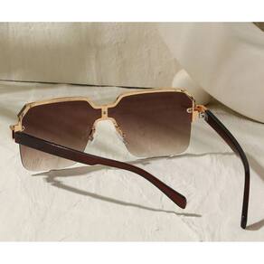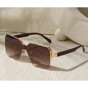 Óculos de Sol Feminino Quadrado Grande Oversized Em Metal Degradê 400UV