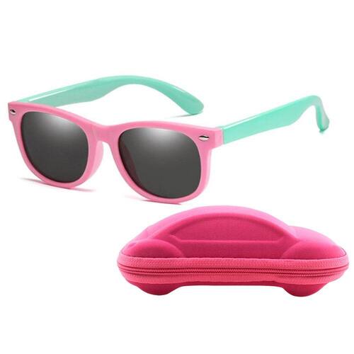Feito com material de silicone, atóxico e hipoalergênico, confortável e 100% flexível. Lentes polarizadas (acompanha teste de polarização), proteção solar UVA400 e UVB. Modelo unissex. Acompanha divertido estojo em forma de carrinho para manter os óculos protegidos.