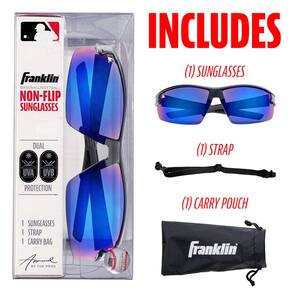 Franklin Sports Óculos de sol retangulares não flip, preto, 72 mm - Óculos de sol de beisebol e softball: estes óculos de sol não flip-up são perfeitos para jogadores de beisebol e softbol para proteger seus olhos do sol no campo e minimizar o brilho na placa - Leve e durável: as armações e lentes leves de policarbonato são resistentes a impactos e feitas para durar temporada após estação - Proteção UV: com proteção UVA e UVB, estes óculos de sol são perfeitos para proteger seus olhos dos raios UV prejudiciais e evitar que o brilho atrapalhe seu jogo - Utilitário multiesportivo: embora estes óculos de sol sejam feitos principalmente para beisebol, eles também são perfeitos para ciclismo, remo, esqui ou qualquer outro esporte ao ar livre! - INCLUÍDO: Estes óculos de sol vêm com sua própria alça de transporte e estojo de transporte