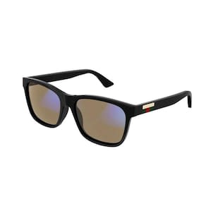 Os óculos de sol GG0746S-005 da Gucci são óculos com lentes fotocromáticas em formato quadrado na cor preto. Logo e bandeira da grife nas hastes.