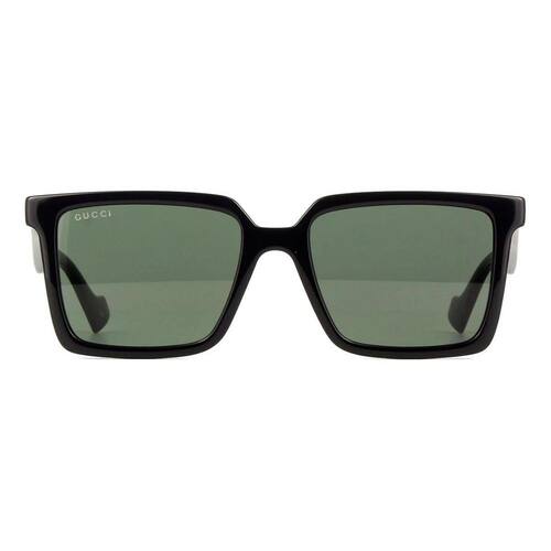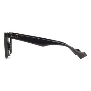 Os óculos de sol Gucci GG1540S-001. A Gucci continua a criar acessórios do dia a dia de novas maneiras. Estes óculos de sol de armação quadrada são caracterizados por uma armação preta em acetato e as hastes são ainda mais realçadas pelo logotipo da Maison. Lentes sólidas cinza escuro completam o design.