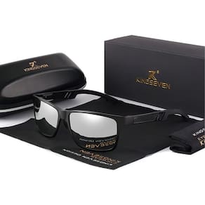 Fotos reais do produto. Trabalhamos há 6 anos com armações e óculos de sol de excelente qualidade, resistentes e modernos. Os melhores óculos com os melhores preços, você encontra apenas aqui. Todos os nossos produtos são embalados em caixas para garantir que chegue em perfeito estado. Benefícios das lentes: As lentes polarizadas reduzem o excesso de luz que atinge os olhos, causando ofuscamento, cansaço visual e dores de cabeça. Além disso, elas protegem os olhos dos raios UVA e UVB, que podem causar a longo prazo doenças como catarata, pterígeo e fotoceratite. Material da armação: Alumínio Material das lentes: Policarbonato Atributos das lentes: Polarizadas, com proteção UV400 e anti-reflexo Acompanha: 1 Caixa da KINGSEVEN, 1 Case da KINGSEVEN, 1 Saquinho da KINGSEVEN, 1 flanela da KINGSEVEN e 1 cartão teste de polarização MEDIDAS: Largura: 15 cm Altura: 4,5 cm Lente: 6 cm Haste: 13,8 cm Ponte: 2 cm