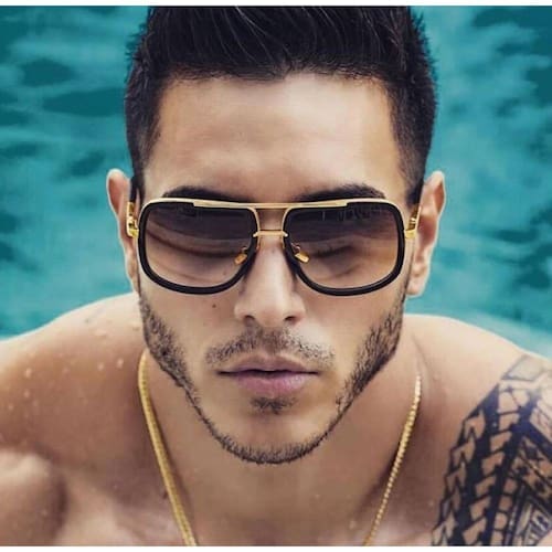Os Óculos de Sol Masculino Vintage possuem formato quadrado c/ armação em dourado e preto com proteção 400UV, feito em acetato, leve e confortável, na cor preto acabamento fosco e lente cinza polarizado que proporciona conforto e proteção. Perfeito para quem tem uma vida agitada e procura emoção a cada dia, quando se fala de moda praia, espírito vibrante e aventureiro, hoje não toma conta somente das praias, mas também está presente nos esportes radicais. Todo o DNA australiano traduzido nos óculos de sol, fazem dos óculos peças com muita personalidade. Além do design marcante, a preocupação com a qualidade da matéria-prima proporciona aos usuários excelente conforto e a garantia de um óculos duradouro. A maior parte dos modelos são feito com plástico injetado exclusivo, material de extrema leveza, flexibilidade e durabilidade. Todos sempre muito bem acompanhados da mais alta qualidade óptica em suas lentes solares. A função das lentes polarizadas é deixar seus olhos mais protegidos destes reflexos e luzes de grande intensidade, já que elas apresentam um filtro que as lentes comuns não tem. Estes filtros tornam as imagens mais nítidas e o conforto visual se torna muito maior, pois aumentam o contraste e eliminam reflexos prejudiciais, oferecendo a máxima proteção contra os raios-ultravioletas.