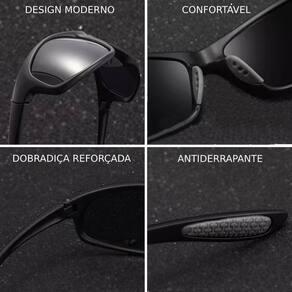 os óculos de sol esportivos são ideais para a prática de esportes de alta performance e podendo ser utilizado também no dia a dia. Seu design frontal com linhas ousadas e modernas que se encaixa perfeitamente em diversos formatos de rosto. As lentes são polarizadas proporcionando uma visão mais nítida e confortável. Garantindo proteção máxima contra os raios nocivos do sol uva/uvb 400nm reduzindo o risco de desenvolvimento das doenças oculares e proporcionando o máximo de saúde para os seus olhos. A armação é super resistente, leve e confortável. Com apoio nasal e ponteiras de material emborrachado, proporciona um efeito antiderrapante. Seu formato foi projetado para não deixar a claridade entrar pelas laterais, sendo assim, ideal para qualquer atividade. - garantia