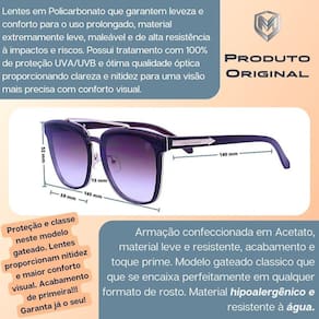 Material: Acetato com aro em metal com tratamento anti-oxidação