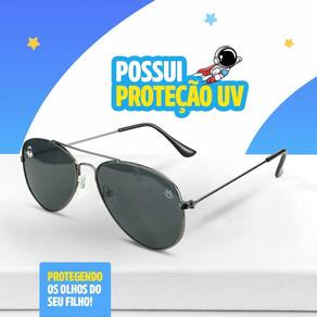 Óculos Infantil Proteção UV Sol Menino Aviador Preto + Case Acetato Presente Social Criança óculos de Sol Infantil Orizom Kids Aviador Oval Lentes Pretas UV com Case Astronautas Proteja os olhos do seu pequeno com muito estilo Com o óculos de sol infantil Orizom, modelo Kids, você garante a máxima proteção para crianças a partir de 5 anos. Suas lentes pretas oferecem proteção UV, mantendo os olhos seguros nos dias ensolarados. Além disso, a e as hastes em aço inoxidável garantem durabilidade e resistência, sem abrir mão do visual moderno. E não é só isso Ao adquirir o kit, você também leva uma case ultra premium da linha Orizom Kids, decorada com uma arte exclusiva de astronautas. Proteja os óculos de forma prática e divertida, tornando o acessório ainda mais atrativo para os pequenos. Marca: Não Informado
