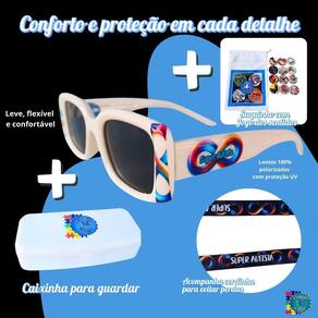 O grande destaque está nas lentes polarizadas com 100% de proteção contra os raios UV, que atuam diretamente na diminuição do impacto da luz solar e do reflexo nos olhos. Isso significa mais nitidez, menos cansaço visual e maior conforto para crianças com hipersensibilidade à luz, algo muito comum entre autistas. Com esses óculos, passeios ao ar livre, idas à escola, terapias ou qualquer atividade externa se tornam muito mais agradáveis e seguras.