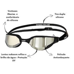 Obtenha o máximo desempenho com os Óculos para Natação Speed Pro lente prata Mirror da Leader do Brasil. Com excepcional conforto e excelente desempenho, ideal para quem busca high performance. Possuem lentes resistentes à impacto, com proteção UV, ante embaçantes e espelhadas, que reduzem o reflexo e brilho da água. Este modelo possui tira e vedação em silicone, ideal para pessoas com pele sensível. -----Troca da Narigueira------ CUIDADO PARA MANUSEAR A NARIGUEIRA! AO REMOVER ELA DEVE SER PUXADA A NARIGUEIRA PARA CIMA E NÃO PARA TRÁS.