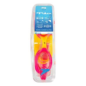 O Óculos Natação Poker Rapid Ultra Junior Infantil é perfeito para os jovens nadadores aperfeiçoarem seu desempenho. O modelo conta com corpo inteiriço de silicone, que proporciona vedação perfeita e ótimo conforto. Suas lentes curvas em policarbonato são inquebráveis e contam com tratamento Anti Fog que impede que as lentes embacem durante a pratica esportiva, também oferece 100% de proteção contra os raios UVA e UVB. Possui tiras duplas de silicone que proporcionam dois pontos de ajuste para maior comodidade. (Indicado para crianças até 8 anos)