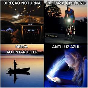 Os verdadeiros óculos de ciclismo, moto e direção com lentes para visão noturna trabalhamos apenas com matéria-prima de , ou seja, a qualidade, acabamento e durabilidade deste produto são sem sombra de dúvidas incomparáveis com itens similares da concorrência que ficam disparadamente para trás. Obtenha proteção e visão ampliada quando estiver com a sua bike à noite, as lentes noturnas proporcionam uma visão mais clara do ambiente, ao mesmo tempo que amenizam ofuscações de faróis altos de outros veículos vindos da direção contrária. Os óculos são leves, modernos, confortáveis, encaixam bem no rosto e proporcionam ótima visibilidade. Excelentes para a prática de esportes. O ajuste de inclinação das hastes fazem com que eles se adaptem a qualquer formato de cabeça, proporcionando aderência e segurança para as suas pedaladas, pliotagem de moto e direção noturna no seu carro