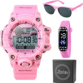 Conjunto Encantador Barbie para Meninas: Relógio, Bracelete prova d'água, Óculos e Caixa Exclusiva