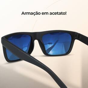 Óculos de Sol Masculino Azul com Proteção UV - Material EmborrachadoAdquira já este elegante par de óculos de sol masculino em tom azul com acabamento emborrachado, perfeito para complementar o seu estilo com muito mais elegância e proteção. Feito com material resistente de policarbonato, as lentes garantem clareza visual, durabilidade e proteção UV eficiente para a saúde dos seus olhos em todos os momentos.Com medidas equivalentes a tamanho único, as lentes possuem altura de 5,5 cm e largura de 6 cm, proporcionando um ajuste versátil para diferentes formatos de rosto. Além disso, as hastes de 14 cm de comprimento oferecem conforto e estilo para um uso prolongado.Este não é apenas um acessório, mas sim uma escolha funcional e estilosa para proteger seus olhos com qualidade e durabilidade. O acabamento emborrachado confere uma sensação suave ao toque, adicionando um elemento extra ao design contemporâneo e versátil do produto. Ideal para presente, é uma ótima opção para quem valoriza estilo e cuidado com a saúde ocular.Não perca a oportunidade de adquirir este óculos de sol versátil e presenteie com um item que oferece muito mais do que um visual elegante. A moda e funcionalidade se unem neste acessório pronto para complementar qualquer estilo e trazer muito mais conforto e proteção para o dia a dia.