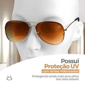 Óculos de Sol Masculino Aviador Marrom com Proteção UVAprimore seu estilo com este sofisticado par de óculos de sol aviador marrom, que oferece uma eficiente proteção UV. Seu design clássico e elegante confere um toque de modernidade atemporal ao seu visual. Características Principais:- Tamanho: Frontal de 13,5 cm para um ajuste confortável e estiloso.- Comprimento das Hastes: 13,5 cm para um encaixe seguro.- Altura das Lentes: 4,8 cm para uma cobertura elegante.- Peso: Leve, com apenas 31 gramas, oferecendo um uso confortável.- Cor: Marrom, adicionando um toque distinto ao seu visual.- Material da Lente: Feito de policarbonato para clareza visual, durabilidade e resistência.Mais do que um acessório, este óculos é uma escolha funcional e estilosa. Ideal para presentear alguém especial, este conjunto é um gesto de estilo e cuidado.Adquira agora este óculos de sol aviador marrom! Complemente qualquer estilo com elegância e ofereça uma proteção essencial contra os raios UV. A moda e a funcionalidade se unem neste acessório, pronto para realçar o visual daqueles que você ama!