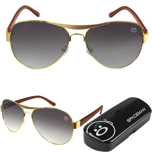 oculos sol masculino aço inox banhado ouro aviador case armação dourada spaceman qualidade premium - Marrom - Único
