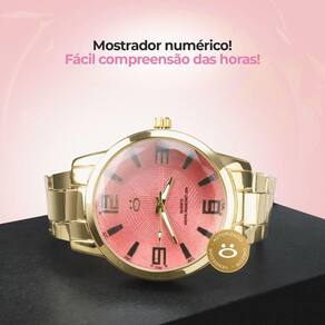 Relógio de Pulso Feminino Orizom Maria: - Design Analógico - Banhado a Ouro - Mostrador Rosa - Aço Inoxidável