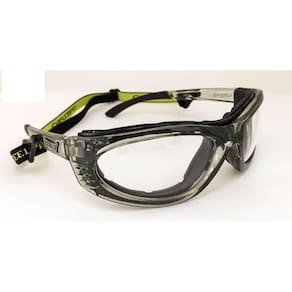 para LENTE de GRAU transparente Incolor ÓCULOS TURBINE da Vicsa Steelpro Bike Motocross - Epis CA 20717 Atenção: O óculos só tem a possibilidade de ficar graduado levando a uma ótica, irão retirar a lente que vem nele e colocar grau no lugar, a parte emborrachada interna é somente anti impacto Óculos de segurança, com modelo convencional confeccionada em material rígido cinza claro transparente com sistema de ventilação indireta composto de 04 quatro fendas localizadas nas bordas da com ponte lentes de policarbonato INCOLOR e hastes tipo espátula. As hastes são compostas de duas peças uma haste confeccionada do mesmo material da que possui um orifício no meio da haste outra semi-haste confeccionada de material preto maleável que é encaixado na haste descrita anteriormente e são fixas na por meio de parafusos metálicos ou haste com elástico que pode ser acoplado no orifício da haste. Uma peça de material plástico preto flexível recobre todo o contorno interno da , inclusive o apoio nasal. Imagens do produto a Tamanho Unico material: policarbonato Marca: Não Informado