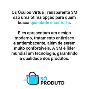 Detalhes Os óculos virtua transparente 3m apresentam um design moderno e antiembaçante. O produto conta com a qualidade mundialmente reconhecida da 3m