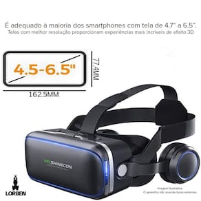 Experimente a realidade virtual de forma simples, divertida e acessível com os Óculos de Realidade Virtual 3D com Fone de Ouvido Lorben.Basta encaixar seu smartphone nos Óculos VR para você ser transportado para a realidade virtual. Você vai se colocar em ação em jogos, filmes e muito mais! As possibilidades de diversão são ilimitadas.Explore o desconhecido e aprenda sobre diferentes lugares experimentando-os como se estivesse realmente lá. Um presente perfeito para tanto para crianças e quanto adultos.Pequeno, leve e portátil, tem estofamento de couro sintético macio e respirável, fácil de limpar, que proporciona conforto mesmo depois de horas utilizando os Óculos VR. Possui suporte de cabeça flexível com alça ajustável em forma de T, feita de material leve, que pode diminuir a pressão em torno de seus olhos, rosto e cabeça, tornando o uso ainda mais cômodo. Além disso, a área do nariz é aprofundada, reduzindo a pressão sobre o nariz. A capa frontal removível ajuda na dissipação de calor e o interior é revestido de espuma macia para proteger a tela de seu smartphone contra arranhões.Compatível com maioria dos smartphones com tela de 4,7 a 6,5 polegadas iOs ou Android.Dispõe de lentes protetoras de luz azul, que melhoram o contraste claro, bloqueando cerca de 72% desta luz prejudicial, aliviando a fadiga ocular. O ajuste das lentes é feito de modo independente, movendo-se os botões localizados na parte superior dos Óculos VR. A distância pupila-objeto ajustável dispensa o uso de óculos de grau para usuários com miopia abaixo de 6,0° dioptria.As lentes asféricas de resina HD ajudam a reduzir ou até mesmo eliminar distorções, diminuindo a sensação de vertigem e fornecendo imagens de alta resolução. Marca: LorbenCor: PretoMaterial: Plástico ABS e lente de resinaPlataforma compatível: iOs/Android/WinSuporte para telefone celular: telas de 4,7" a 6,5"polegadasLente: Lente asférica de alta transmitânciaDiâmetro da lente: 40mmNitidez: 99%Visibilidade: 100%Diferença de cor: 0,38mmFormato de vídeo: 3D esquerda-direitaGrande angular: 100°Distância focal: AjustávelAjuste de miopia: 0 - 6,0°Ajuste de hipermetropia: 0 - 5,0°Ajuste de distância do objeto: 44mm - 53mmAjuste de distância Inter pupilar: 60mm - 67mmSensibilidade para fone de ouvido: 112dB/mwFaixa de resposta de frequência: 20 - 20000HzImpedância: 320 ohmPotência: até 50m/WConector de fone de ouvido: P2 3,5mmTeclas de função: Volume e pausa de reproduçãoInclui:1 Óculos VRPano para limpeza das lentesManual do usuárioDimensões do produto: 22x18x9,5cmPeso dos óculos VR: 450gTamanho da embalagem: 21,5x23x10,8cmPeso da embalagem: 590gCódigo do produto: 6032IMPORTANTE: A qualidade da imagem depende da resolução de seu smartphone e da qualidade do vídeo.Para melhores resultados, aumente o brilho do seu telefone e cancele o "ajuste de brilho automático".Baixe o app VR na loja de aplicativos móveis. Todos os apps VR são comuns a este produto.Para usar o gamepad, você precisa conectá-lo ao smartphone via Bluetooth.Imagens ilustrativas. As tonalidades podem variar. O aparelho não acende luzes externas.