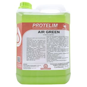 Odorizante Air Green 5 Litros Protelim Detalhes do Odorizante Air Green: O Air Green é um odorizante formulado com matérias primas importadas, perfeito para uso em quaisquer tipos de automóveis, ônibus e caminhões, deixando um agradável aroma. Tendo propriedades para eliminar, neutralizar e mascarar odores desagradáveis. Devido a sua fragrância de alta performance e qualidade, se torna eficaz para deixar um odor muito agradável no ambiente onde seja utilizado. Modo de uso: Usar Air Green puro ou em uma solução de diluição de 1 litro de produto para até 3 litros de água limpaPulverize no ambiente desejado para que Air Green lhe proporcione um odor suave, agradável e duradouro. Agite antes de usar. Composição: Nonilfenol etoxilado, solvente, conservante, fragrância, corante e veículo. Não contém desnaturante. Conteúdo: 5 Litros