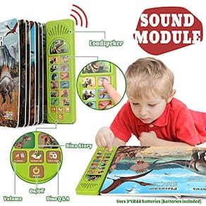 OENUX Brinquedos de dinossauro com livro de som interativo para crianças 3-5, livro de dinossauro com som e 12 figuras de dinossauros de brinquedo, dinossauro criança aprendendo brinquedos para menino, presente de dinossauro para meninos idade 4-7