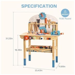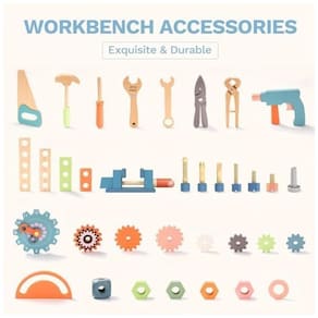 A Bancada de Madeira ROBUD é feita de madeira maciça, com construção resistente e durável. Sua superfície é lisa e sem rebarbas, com cantos arredondados para segurança das crianças. Fácil de montar e desmontar, podendo ser usada de forma independente. Possui prateleira para armazenar outras ferramentas. Rica em cores, atrai a atenção das crianças. Inclui diversas ferramentas de madeira para estimular a imaginação e criatividade das crianças. Ideal para ensinar o uso de ferramentas e proporcionar diversão sem fim para meninos e meninas.