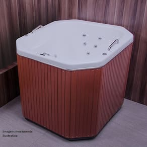 O Spa Astra Mônaco Super Luxo, confeccionado em Gel Coat, conta com cinco jatos principais de hidromassagem, que proporcionam sensações de massagem e relaxamento. Seu design oferece espaço para uma pessoa confortavelmente. O modelo tem sistema de aquecimento de fábrica. Acionamento Pneumático: Sim Acompanha Aquecedor: Sim Acompanha Motobomba: 01 Air Blower: Não Alças de Apoio: Opcional Altura: 78 cm Ambiente: Banheiro Apoio de Cabeça: Não Cascata: Não Certificado: Este produto possui certificado do INMETRO conforme portaria 351 Comprimento: 110 cm Cor: 110V Cor: 110V Dispositivo de Sucção: 02 Entrada de Água: Sim Entrada de Ar: Sim Formato: Quadrado Kit Hidráulico: Não Largura: 100 cm Necessita Instalação: Sim Possui Pés: Não Potência da Motobomba: 1/2CV Quantidade de Jatos da Hidromassagem: 02 Quantidade de Minijatos: 05 Sistema de Som: Não Tubulação de Água e Ar: Sim Válvula de saída de água: Sim