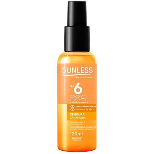 O Óleo Bronzeador Sunless Cenoura proporciona um bronzeado bonito e duradouro e protege sua pele contra os efeito nocivos do sol. Sua fórmula enriquecida com óleo de cenoura e Vitamina E, são juntos um forte aliado no combate à formação de radicais livres, previne o envelhecimento precoce da pele e auxilia na prevenção de queimaduras solares. Resultando em uma pele bronzeada e hidratada como você realmente merece.