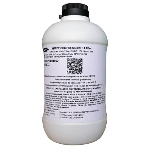 O Óleo BSE-32 Bitzer R134/404 1 Litro UCBPR001002 é uma solução de lubrificação de alta qualidade, especialmente formulada para compressores de sistemas de refrigeração que utilizam os gases refrigerantes R134a e R404A. Sua composição foi desenvolvida para garantir a eficiência na lubrificação, protegendo as peças internas contra o desgaste e a corrosão, prolongando a vida útil dos componentes e otimizando o desempenho do sistema. Ideal para manutenção e reposição, oferece alta performance e confiabilidade.