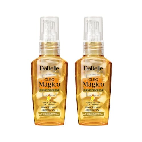 Descrição O Óleo Capilar Dabelle Magico Blend é uma fórmula inovadora e eficaz projetada para proporcionar nutrição intensa e brilho deslumbrante aos cabelos. Com sua embalagem prática de 40ml, este óleo capilar é um verdadeiro elixir de beleza para todos os tipos de cabelo. A Magico Blend é uma cuidadosa combinação de ingredientes premium, formulada para revitalizar e transformar os fios, deixando-os mais saudáveis e radiantes. Sua textura leve e não oleosa permite uma aplicação fácil e rápida, absorvendo instantaneamente nos cabelos. Este óleo capilar é enriquecido com uma mistura única de óleos essenciais, vitaminas e antioxidantes, que trabalham em conjunto para fortalecer os cabelos, suavizar as cutículas e proteger contra danos ambientais. Além disso, sua fragrância delicada proporciona uma experiência sensorial agradável, deixando os cabelos perfumados ao longo do dia. A embalagem compacta de 40ml torna o Óleo Capilar Dabelle Magico Blend perfeito para ser levado para qualquer lugar, garantindo que seus cabelos recebam o cuidado necessário a qualquer momento. Seja para domar o frizz, proporcionar brilho instantâneo ou revitalizar as pontas secas, este produto é a escolha ideal para quem busca cabelos deslumbrantes e saudáveis. Experimente a magia da Magico Blend e descubra um novo nível de cuidado capilar. Modo de uso Use uma pequena quantidade de óleo, especialmente se for a primeira vez. A quantidade pode variar de acordo com o comprimento e espessura do seu cabelo. Aplique o óleo uniformemente no cabelo, concentrando-se nas pontas e áreas mais secas. Evite a raiz se o seu cabelo for oleoso. Se desejar, faça uma massagem suave no couro cabeludo para estimular a circulação sanguínea. Certifique-se de distribuir o óleo de maneira uniforme para garantir que todos os fios se beneficiem. Deixe o óleo agir por pelo menos 30 minutos antes de lavar o cabelo. Alguns preferem deixar durante a noite para obter benefícios mais intensos. Lave o cabelo como de costume. Talvez seja necessário usar um shampoo extra para garantir que todo o óleo seja removido. Use o óleo capilar regularmente, dependendo das necessidades do seu cabelo. Pode ser semanalmente ou conforme recomendado pelo produto. Marca: Não Informado
