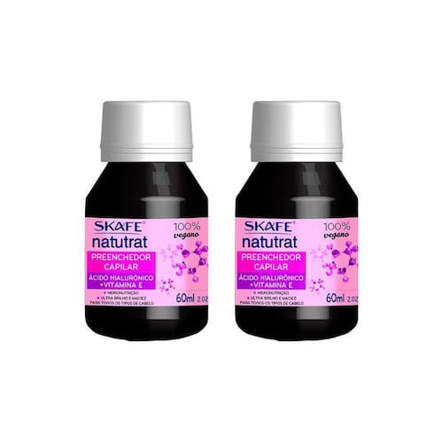 Descrição: O óleo capilar Skafe Natutrat com Ácido Hialurônico é um produto destinado ao cuidado e tratamento dos cabelos. Com uma embalagem de 60 ml, este óleo possui propriedades hidratantes e nutritivas que ajudam a promover a saúde e o brilho dos fios. O Ácido Hialurônico, conhecido por suas propriedades hidratantes, é adicionado à fórmula do óleo capilar para proporcionar uma hidratação intensa aos cabelos, ajudando a reter a umidade e evitando o ressecamento. Isso pode ser especialmente benéfico para cabelos secos, danificados ou quimicamente tratados. A aplicação regular do óleo capilar Skafe Natutrat com Ácido Hialurônico pode ajudar a melhorar a textura dos fios, deixando-os mais macios, sedosos e fáceis de pentear. Além disso, pode auxiliar na redução do frizz e na proteção contra agressões externas, como a poluição e o calor do secador e chapinha. Modo de usar: Lave bem o cabelo com shampoo e condicionador, como de costume. Com os cabelos ainda úmidos, aplique uma pequena quantidade do óleo capilar Skafe Natutrat na palma das mãos. Espalhe o óleo capilar entre as mãos e aplique-o ao longo do comprimento dos cabelos, evitando a raiz. Massageie suavemente para garantir que o óleo seja bem distribuído por todos os fios. Não é necessário enxaguar o cabelo após a aplicação do óleo capilar. O óleo capilar Skafe Natutrat pode ser utilizado tanto em cabelos secos quanto úmidos.