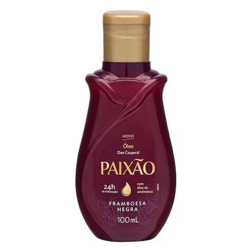 O Óleo Corporal Paixão Framboesa Negra contêm em sua fórmula o óleo de amêndoas que proporciona a pele hidratação por até 24 horas. Possui ação desodorante e uma fragrância encantadora com notas de framboesa negra, morango e ameixa que juntos formam um aroma de frutas maduras e além disso possui também notas de fundo de caramelo, marshmallow e baunilha. É indicado o uso diário, logo após o banho com a pele ainda molhada. Benefícios: - Fragrância agradável; - Ação desodorante; - Hidratação. Modo de usar: Após o banho, com a pele ainda molhada aplique o óleo pelo corpo massageando até a completa absorção.