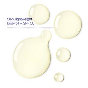 - Bom para brilhar – Este óleo corporal de proteção solar FPS 50 leve e hidratante deixa a pele brilhante, sem sensação oleosa.