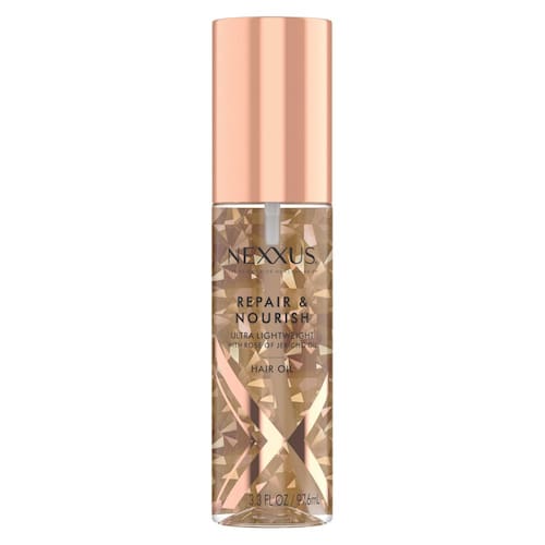 — ÓLEO DE CABELO ULTRA LEVE: O óleo de cabelo Nexxus Repara e Nutre é um óleo restaurador intensamente nutritivo, mas ultraleve, infundido com óleo de rosa de Jericó que retém a umidade, aumenta o brilho e faz com que os fios secos e cansados voltem à vida.