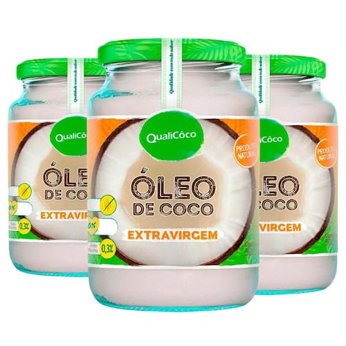 Oleo de Coco Coconut Qualicoco Extra Virgem 500mL 3 vidros O óleo de coco extra virgem Coconut Qualicoco é um produto 100% natural, obtido através da prensagem a frio da polpa do coco fresco. Ele é uma fonte rica de ácidos graxos de cadeia média TCM , como o ácido láurico, que são facilmente metabolizados pelo organismo e se transformam rapidamente em energia. Este óleo é ideal para cozinhar e assar, pois é altamente resistente à oxidação e possui um sabor suave e agradável de coco. Ficha Técnica: Marca: Coconut Qualicoco Nome do produto: Óleo de Coco Extra Virgem Volume: 500 mL Ingredientes: Óleo de coco extra virgem Origem: Brasil Armazenamento: Manter em local seco e arejado, longe da luz solar direta Validade: 24 meses a partir da data de fabricação Alergênicos:O óleo de coco extra virgem Coconut Qualicoco é livre de alergênicos comuns, como glúten, lactose, soja e frutos secos.