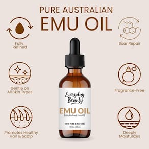 Descubra o segredo do óleo de emu puro australiano, um hidratante de pele 100% natural para melhorar a saúde da sua pele, cabelo e unhas. Nosso óleo de emu é de origem ética e livre de aditivos. É rico em ácidos graxos ômega-3, ômega-6 e ômega-9, tornando-o um poderoso hidratante que promove uma pele mais saudável e flexível, suaviza a pele seca, minimiza a aparência de cicatrizes e estrias e promove o crescimento saudável de cabelos e unhas. Ao contrário de outros hidratantes, nosso óleo de emu é conhecido por sua rápida absorção, penetrando rapidamente na pele para proporcionar hidratação profunda e nutrição sem deixar resíduos gordurosos, o que o torna a escolha ideal para uso diário em todos os tipos de pele, incluindo sensíveis. Aplicação na pele – Adicione uma pequena quantidade à área e massageie a pele. Aplicação no cabelo – Como uma máscara de cabelo noturna, adicione 1-2 colheres de sopa ao cabelo, massageie o couro cabeludo e lave pela manhã. - Propriedades de hidratação profunda – O óleo de emu australiano puro penetra profundamente na pele e no couro cabeludo, proporcionando hidratação superior e evitando a secura sem obstruir os poros, tornando-o ideal para todos os tipos de pele e cabelo - Rico em ácidos graxos essenciais – Com um alto teor de ácidos graxos ômega-3, 6 e 9, o óleo de emu nutre e fortalece a pele e o cabelo, promovendo elasticidade e reduzindo a aparência do envelhecimento - Perfeito para todos os tipos de pele e cabelo – Suas propriedades hidratantes naturais ajudam a acalmar a pele seca e danificada, bem como couro cabeludo e cabelo. - Óleo de emu austríaco puro e totalmente natural – cheio de antioxidantes e tudo o que sua pele e cabelo precisam. Nosso óleo de emu é 6x refinado, aplique diretamente no seu rosto, pele e cabelo ou simplesmente adicione ao seu hidratante. - Condicionamento e crescimento do cabelo – Quando aplicado no couro cabeludo, o óleo de emu condiciona o cabelo e pode promover o crescimento do cabelo em áreas de afinamento. Ajuda a nutrir o couro cabeludo, reduzindo a secura e a descamação.