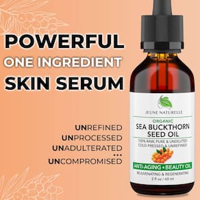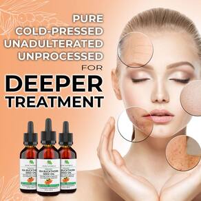 óleo de espinheiro marítimo melhora os três principais sinais de envelhecimento da pele - rugas, linhas finas e manchas da idade. Os ácidos graxos e carotenóides encontrados no óleo de espinheiro marítimo penetram na pele e fornecem sua nutrição. Esse suprimento externo de nutrientes mantém a pele sustentada e nutrida. As propriedades do óleo de espinheiro marítimo o tornam muito hidratante e nutritivo para a pele e o cabelo. Ele vem mostrando uma melhora no tom de pele noturno, suavizando as linhas e dando o brilho mais bonito à sua pele! Prepare-se para ver uma mudança significativa no tom e na suavidade da sua pele e comece a receber elogios sobre a beleza da sua pele!