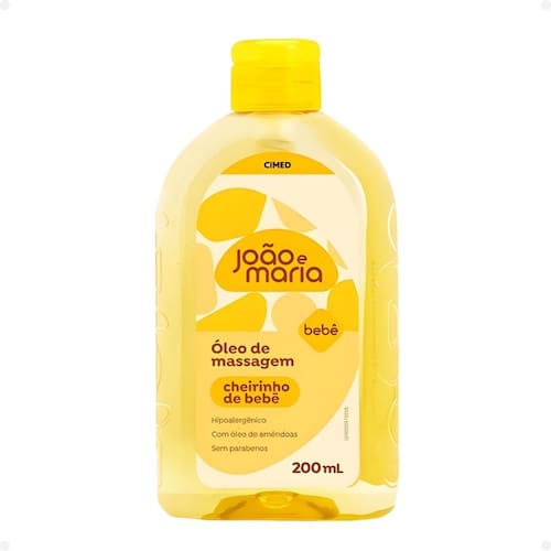 Modo De Uso Aplique pequenas quantidades do Óleo de Massagem Cimed João e Maria nas mãos e espalhe suavemente pelo corpo do bebê, realizando movimentos circulares delicados até a completa absorção. Evite aplicar no rosto e nas áreas próximas aos olhos.