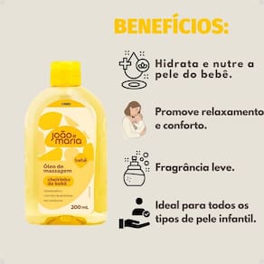 Óleo De Massagem Cimed João e Maria Cheirinho De Bebê 200ml O Óleo de Massagem Cimed João e Maria Cheirinho de Bebê 200ml é perfeito para proporcionar momentos de carinho e relaxamento entre pais e bebês. Com uma fragrância suave e delicada, o produto foi especialmente desenvolvido para hidratar e proteger a pele sensível do bebê, oferecendo toque macio e sensação de bem-estar.