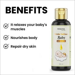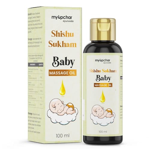Óleo de massagem para bebês MyUpchar Ayurveda Shishu Sukham 100 ml | Óleo de massagem ayurvédico natural para recém-nascidos e bebês | Fórmula leve e não pegajosa | Enriquecido com Shankhpushpi, óleo de gergelim e extratos de ervas | Óleo de bebê suave, seguro e hidratante | Promove uma pele saudável, fortalece ossos e músculos | Cuidados diários nutritivos para bebês | 100% ayurvédico e livre de toxinas Óleo para bebês testado dermatologicamente — nutre a pele do bebê: o óleo de massagem herbal Shishu Sukham para bebês é enriquecido com ingredientes naturais que nutrem e hidratam profundamente seu pele delicada do bebê, mantendo-a macia e flexível.