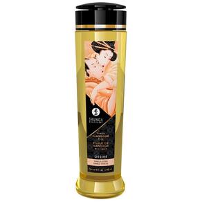 Óleo de massagem Desire Vanilla Fetiche da Shunga Erotic Art. Aproveite o prazer de dar ou receber uma massagem sensual e erótica usando nossa mistura exclusiva de óleo prensado a frio feito de óleo de amêndoa, óleo de semente de uva, óleo de semente de gergelim, óleo de abacate, vitamina E, óleo essencial de cártamo, extratos de ylang-ylang e ioimbe, e dependendo da fragrância, extratos de óleo essencial de lavanda, flores de rosa, flores de pêssego, flores de macieira, flor de laranjeira. S e baunilha. Estes óleos foram cuidadosamente selecionados por suas qualidades estimulantes e energizantes. Eles deslizam suavemente e facilmente sobre sua pele. Sem sensações gordurosas! Além disso, uma fragrância exótica trará seus sentidos ao máximo prazer. Defina um clima verdadeiramente sensual desfrutando deste óleo de massagem perfumado e sedoso juntos. Uma mistura especial de vários óleos diferentes desliza suavemente e oferece uma sensação elegante e sexy quando vocês se tocam. Lindamente perfumado, as 9 variedades aromáticas terapêuticas disponíveis oferecem uma variedade de opções eróticas para se adequar ao seu humor. A tampa flip top permite fácil distribuição. Observe que este é um produto à base de óleo e, portanto, não pode ser utilizado com preservativos de látex. Aroma: desejo/baunilha. Tipo: Óleo de massagem. Volume: 227 g. Ingredientes: pode conter óleos de amêndoa, semente de uva, gergelim, abacate e/ou açafrão, vitamina E, ylang, fragrância.