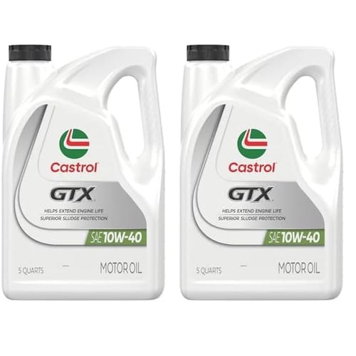 Castrol GTX 10W-40 Óleo de motor convencional, 5 quartos, pacote com 2 - As informações abaixo são apenas por embalagem - Tecnologia exclusiva TriShield oferece proteção superior de depósito - Proteção máxima contra viscosidade e quebra térmica - Ultra baixo atrito para melhorar a quilometragem do gás; Cor da garrafa: Branco - Aditivos premium personalizados permitem desempenho avançado - Excede o ILSAC GF-5, API SN