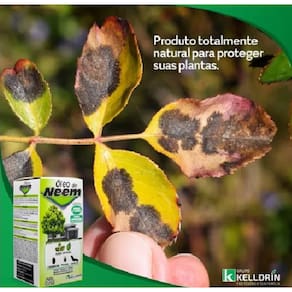 Modo de Usar.: Diluir 10 ml do óleo de neem da kelldrin em 1 litro de água e aplicar por pulverização diretamente na planta onde os fungos oídio (sphaerotheca pannosana), mancha negra (diplocarpon rosae), pulgões, cochonilhas e lagartas estão alojados.