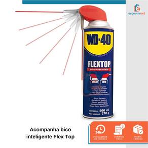 SOBRE ESTE ITEM O WD-40 com Bico Flex Top é o lubrificante multifuncional ideal para uso doméstico, automotivo e profissional. Com seu sistema inteligente 2 em 1, permite aplicação como spray amplo ou jato direcionado, graças ao canudo extensor embutido, perfeito para alcançar áreas de difícil acesso com precisão.
