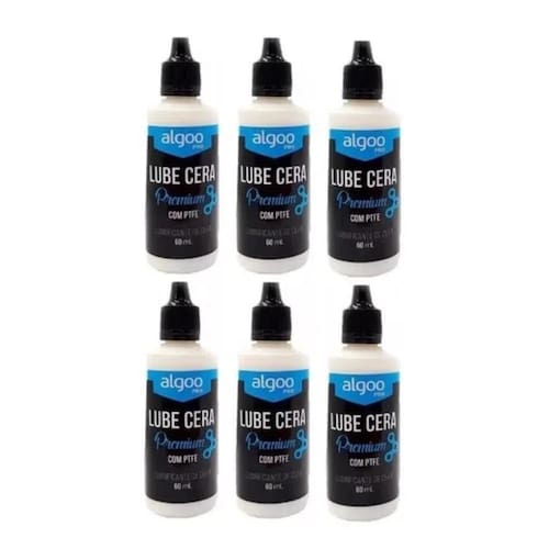 - Marca: Algoo- Modelo: Lube Cera Premium PTFE - Quantidade: Frasco 60ml- Anúncio referente a 6 unidades - Alto poder de lubrificação- Lubrificante a base de Cera com PTFE- Feito com óleos biodegradáveis- Menos sujeira na corrente após o pedal- Embalagem de fácil transporte- Uso em mountain bike, bikes de estrada e urbano- GTIN: 7898953867657