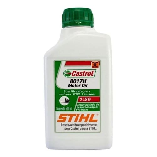 Óleo 2T Stihl 8017 H - 500mlDesenvolvido para atender às necessidades tecnológicas, de desempenho e de manutenção dos motores STIHL. Reduz em 50% o consumo de óleo em comparação aos demais e apresenta uma economia no custo de manutenção de até 40%.Recomendado para motores STIHL de alto desempenho, tais como: motosserras, roçadeiras, motobombas e cortadores de disco.Este lubrificante possui um elevado poder detergente, que evita o acúmulo de resíduos de carbono.Desenvolvido para atender às necessidades tecnológicas, de desempenho e de manutenção dos motores STIHL. Reduz em 50% o consumo de óleo em comparação aos demais e apresenta uma economia no custo de manutenção de até 40%, se diferenciando dos lubrificantes convencionais API TB ou TC por diversas características:A. Limpeza mais efetiva do motorReduz o acúmulo de resíduos de carbono, assim como a formação de vernizes e de lacas, na zona dos anéis do pistão, reduzindo o risco de travamento do motor.B. Aditivação anticorrosivaPrevine contra a ação corrosiva da umidade do ar aspirado e dos ácidos formados durante a combustão, protegendo as partes internas do motor.C. Ação antidesgasteMaior proteção contra o desgaste das partes móveis dos motores, mesmo em situações severas de uso.D. Formação de cinzasSua tecnologia exclusiva evita a formação de cinzas na cabeça do pistão, na janela de exaustão e nas velas, e prevenindo a pré-ignição.